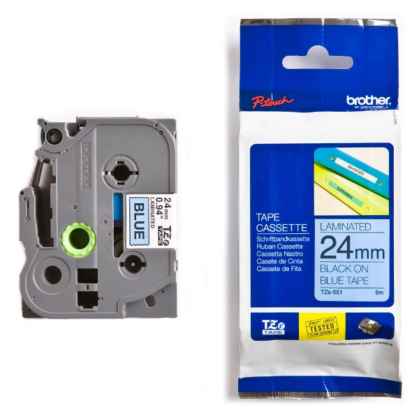 Brother P-Touch Laminated Black on Blue 8m x 24mm