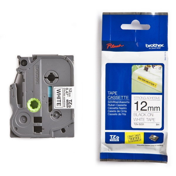 Brother TZe-S231 Labelling Tape Cassette – Black on White, 12mm wide